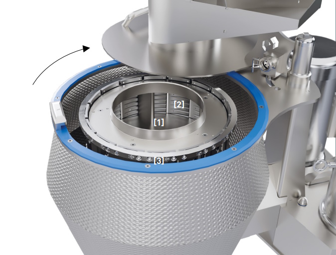 Разница в скорости вращения режущей головки и рабочего колеса запрограммирована и может регулироваться с помощью сенсорного экрана.